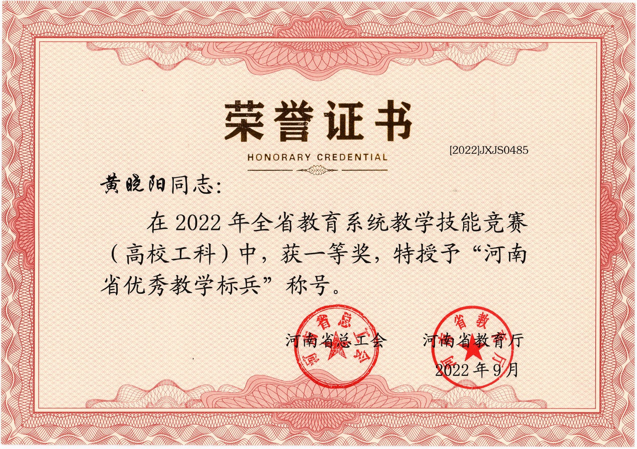 河南省优秀教师、全省教学技能竞赛一等奖获得者