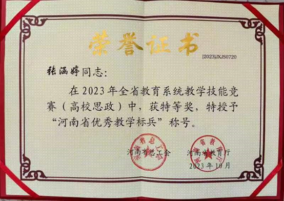 全省教学技能竞赛特等奖、河南省优秀教学标兵获得者