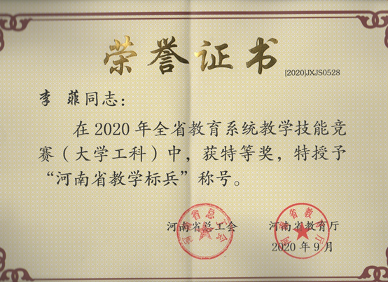 河南省五一劳动奖章、全省教学技能竞赛特等奖获得者——李菲老师